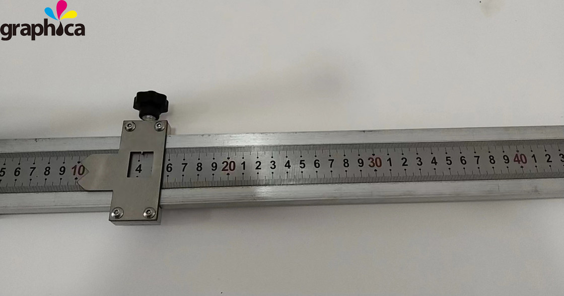 Tagliatore a matrice di alto livello, con una righella di 70 cm e un cursore di misura per un taglio in un angolo di 45° (entrambi gli estremi vengono tagliati in un angolo contemporaneamente). |