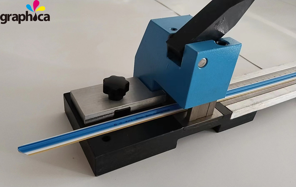 Tagliatore a matrice più economico, corpo in alluminio con lunghezza di misura di 700 mm, entrambe le estremità tagliate contemporaneamente con mitra a 45°. |