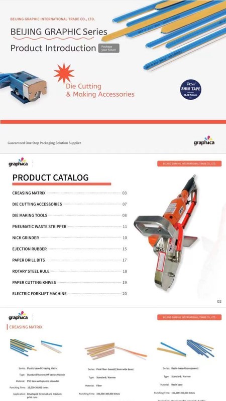 A1:La società Beijing Graphic Inte·l Trade è stata fondata nel 2012 come produttore professionale di matrice di piegatura e coltelli per il taglio della carta, specializzata in matrice di piegatura per il taglio a stampo,con una lunghezza non superiore a 50 mm,.