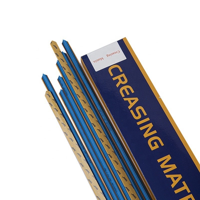 Ad esempio: spessore del cartone: 0,52 mm; spessore delle regole di piegatura: 0,71 mm, secondo la formula di calcolo: A=0,52≈0,5 mm; B=0,52 x 1,5 +0,71 = 1,49 ≈1,5 mm,Quindi dovremmo scegliere la dimensione di 0..5 x 1.5.