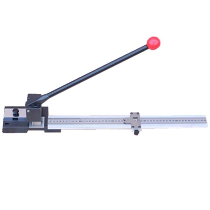 Tagliatore a matrice più economico, corpo in alluminio con lunghezza di misura di 700 mm, entrambe le estremità tagliate contemporaneamente con mitra a 45°. |